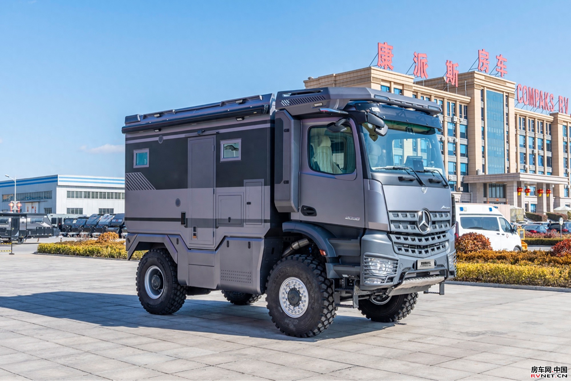 在房车领域,康派斯阿洛斯碳纤维房车以“全碳纤维结构”和“奔驰阿洛斯4×4底盘”两大核心亮点,重新定义了高端越野房车的标准。这款长度控制在6米以内的重卡房车,不仅满足蓝牌C照驾驶的法规要求,更以“全碳纤维箱体”和“一体成型工艺”实现极致轻量化与结构强度。从外观到内饰,从底盘到生活区,每一处细节都彰显着颠覆性创新,堪称移动的“碳纤维科技堡垒”。