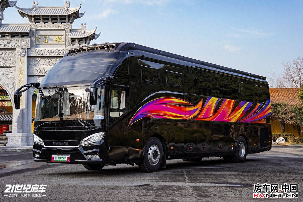 车身外部定制了凤凰彩绘拉花,五彩斑斓的涂装灵动大气,兼具国风吉祥寓意,行驶在路上便是一道流动的风景线,辨识度拉满。作为基于金龙大巴底盘改造的车型,它自带大型车辆的沉稳气场,搭配定制开模的车身细节,既保留了大巴的稳定性,又融入了房车的专属设计,颜值与气场双在线。值得一提的是,驾驶这台庞然大物, 需要A1和B2的双重选择,加上其出色的性能配置,也难怪车主们都会配备专属司机。
