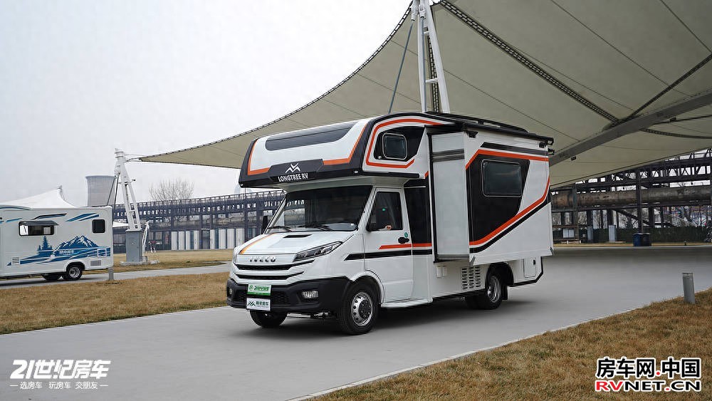 在外貌设计与户外配置上,这款房车做到了颜值与实用双在线,性价比尤为突出。车身采用黑色 + 橙色撞色的几何图案设计,视觉冲击力十足,行驶在路上回头率爆表,成为旅途中的独特风景线。