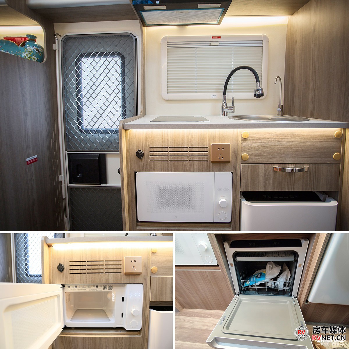 厨房区较之前版本也有些变化,操作台上改用了一款更大尺寸的圆形不锈钢洗菜池,橱柜内部包含一款微波炉,将2020款的洗衣机换成了一款小米洗碗机,储物空间只有一个抽屉。