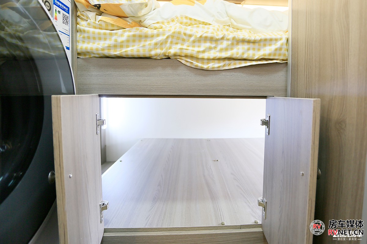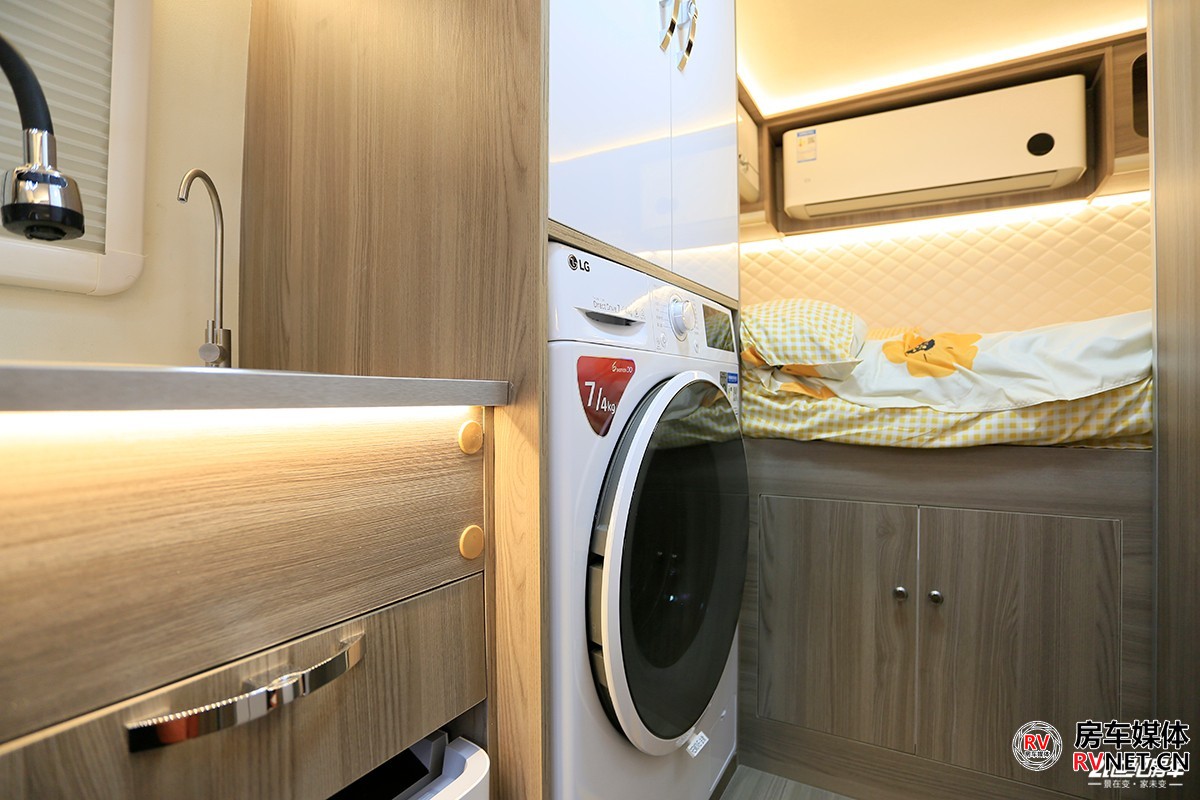 这一代新飞H300将此前配备的2.8kg洗衣机直接升级为LG品牌7kg烘洗一体洗衣机,在房车中应该是极为少有的,这时候平头房车的空间优势得以完全发挥出来。