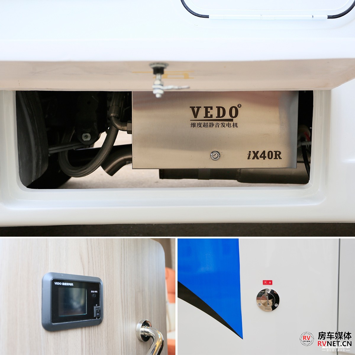 中门顶部的总控制面板全部为机械式按键,照顾老年用户的使用习惯。这款车电路系统方面,标配48V 200Ah锂电池,3000W逆变器,4000W底置发电机和1000W太阳能电池板,电力的配置数据确实非常高。